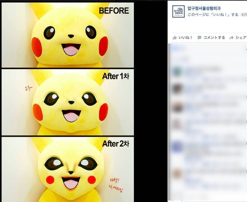 ピカチュウ 韓国で整形したってよ 韓国の美容整形外科の広告にピカチュウが登場 ポケモンgoブームもここまで来たか 16年9月15日 エキサイトニュース